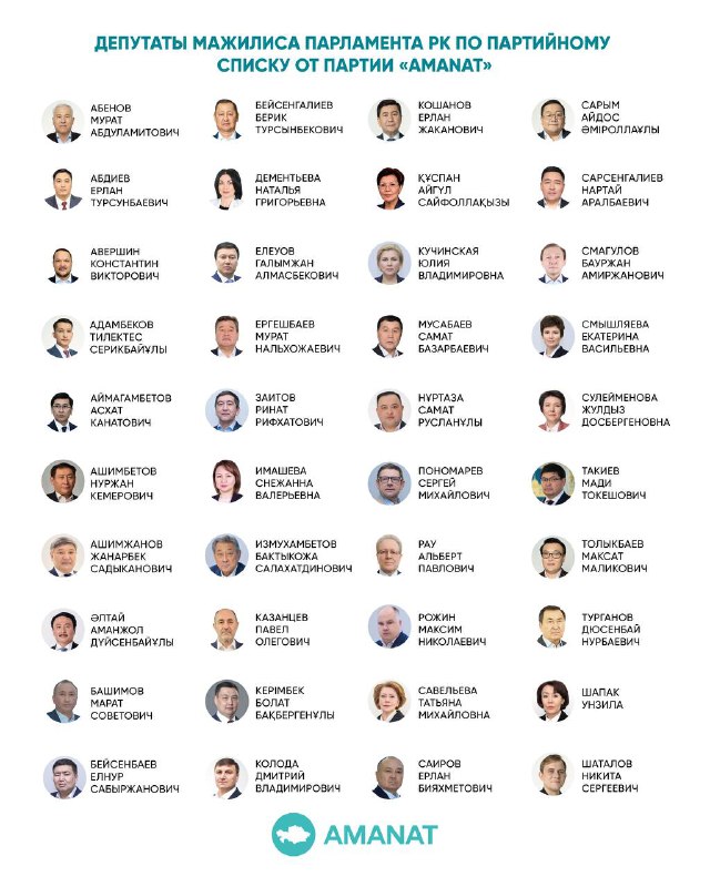 Напомним, по итогам внеочередных выборов депутатов Мажилиса по партийным спискам «AMANAT» набрала 53,9% голосов избирателей, и получила 40 мандатов.