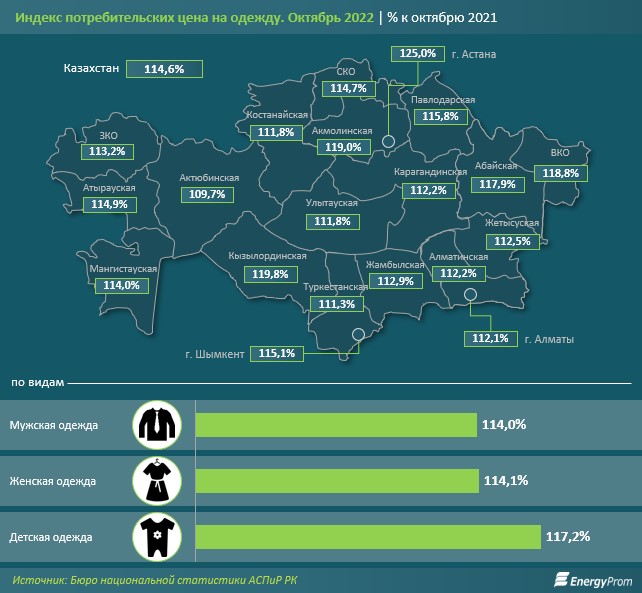 Рост цен на одежду в РК составил почти 15% за год, пишет energyprom.kz.
