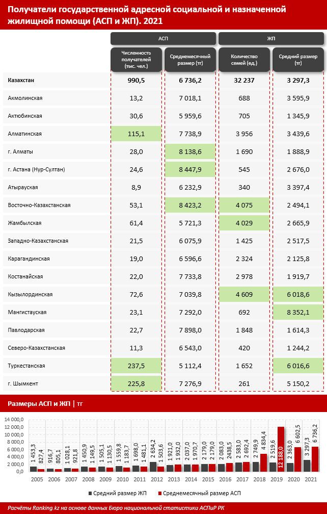 Еске салайық: Қазақстан Республикасында АӘК тағайындау «Мемлекеттік атаулы әлеуметтік көмек туралы» заңмен реттеледі және Қазақстан Республикасының азаматтарына, қандастарға, босқындарға, шетелдіктер мен азаматтығы жоқ адамдарға тұрақты тұратын азаматтарға материалдық көмек көрсетуді көздейді. жан басына шаққандағы орташа табысы кедейлік шегінен аспайтын Қазақстан Республикасы. ХО-ны тағайындау «Тұрғын үй қатынастары туралы» Заңмен реттеледі және аз қамтылған отбасылар мен азаматтарға тұрғын үйді ұстауға және коммуналдық қызметтерді төлеуге жергілікті бюджеттер есебінен тұрғын үй көмегін көрсетуді көздейді.