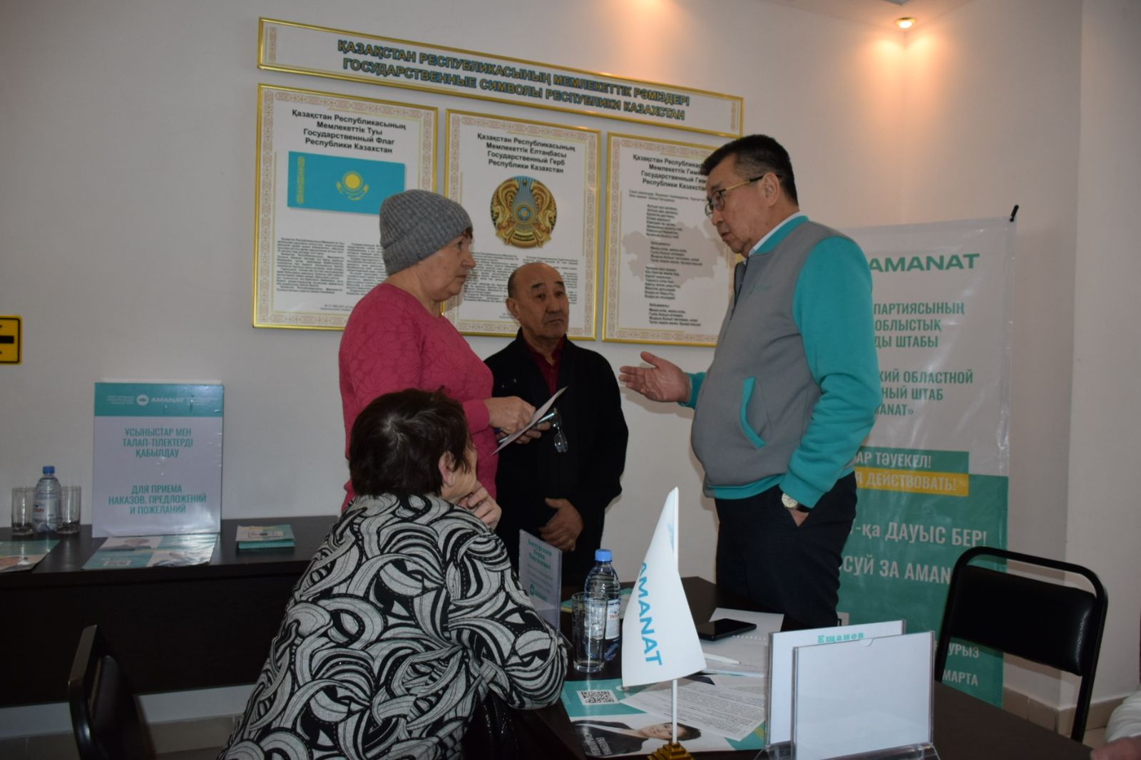 «AMANAT» – единственная партия, системно работающая во всех уголках нашей страны. В каждом районе и городе действуют отделение и общественная приемная Партии. Мы готовы выслушать каждого, найти решение проблем и оказать комплексную поддержку. Время действовать!