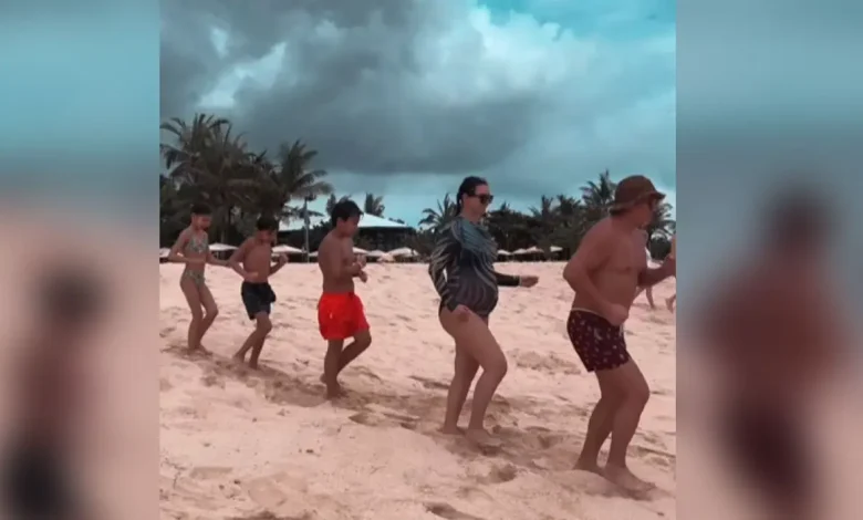 Видеода жұлдызды жұп отбасымен бірге Балиде демалып жүргенін көрсетті.