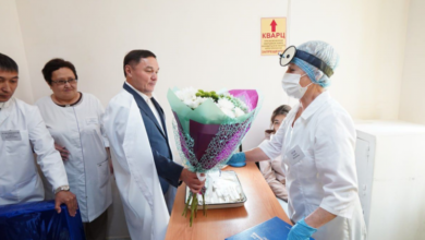Ермек Маржикпаев поздравил с 80-летним юбилеем врача Ерейментауской центральной больницы