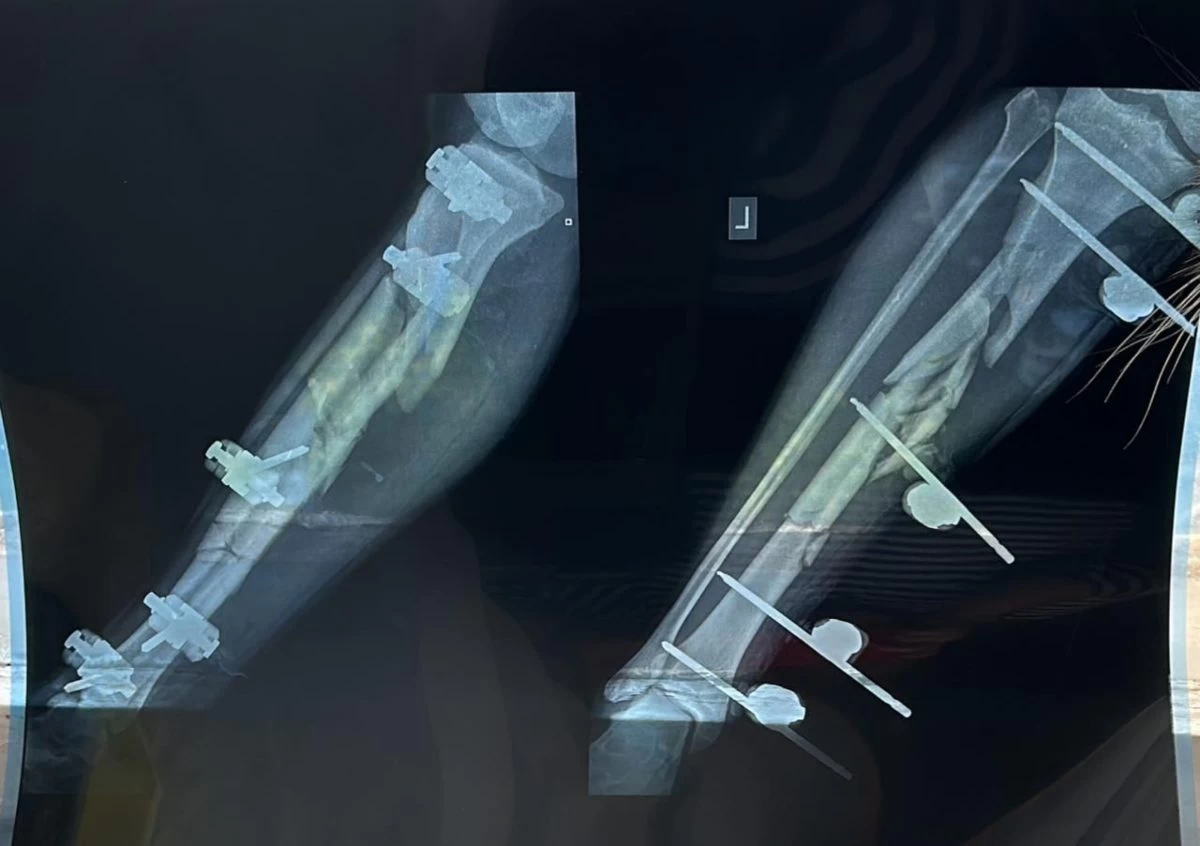 Александрдың жараланған аяғы. Оның аяққа тұрып кетуі үшін әлі біраз уақыт қажет