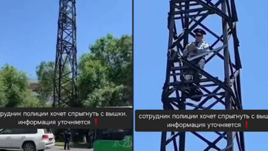 Желіде мұнарадан «секіргелі тұрған» полиция қызметкерінің видеосы тарады
