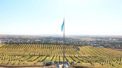 ТУРКЕСТАН: В КАЗЫГУРТЕ УСТАНОВЛЕН ФЛАГ НА ВЫСОТЕ 45 МЕТРОВ