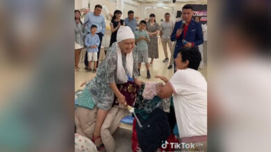 Әлеуметтік желіде бесік той кезінде бесіктің үстінен мініп алып, ат мінгендей шапқан, одан қалса, қонақтарды сабаған ақ жаулықты әженің видеосы…