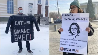 «Сатира – қылмыс емес»! Дәл осындай жазбамен бүгін Алматыда және Қостанайда екі адам пикетке шықты. Олар ұсталған @qaznews24 паблигінің авторы…