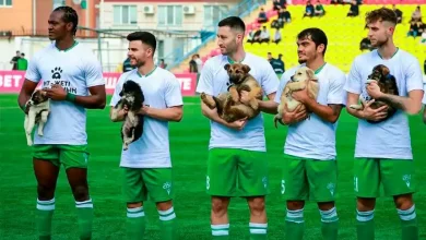 Атыраулық футболшылар алаңға бір-бір күшік құшақтап шықты