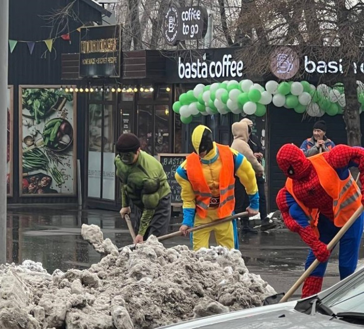 Человек-паук, Супермен и Халк вышли убирать улицы Алматы