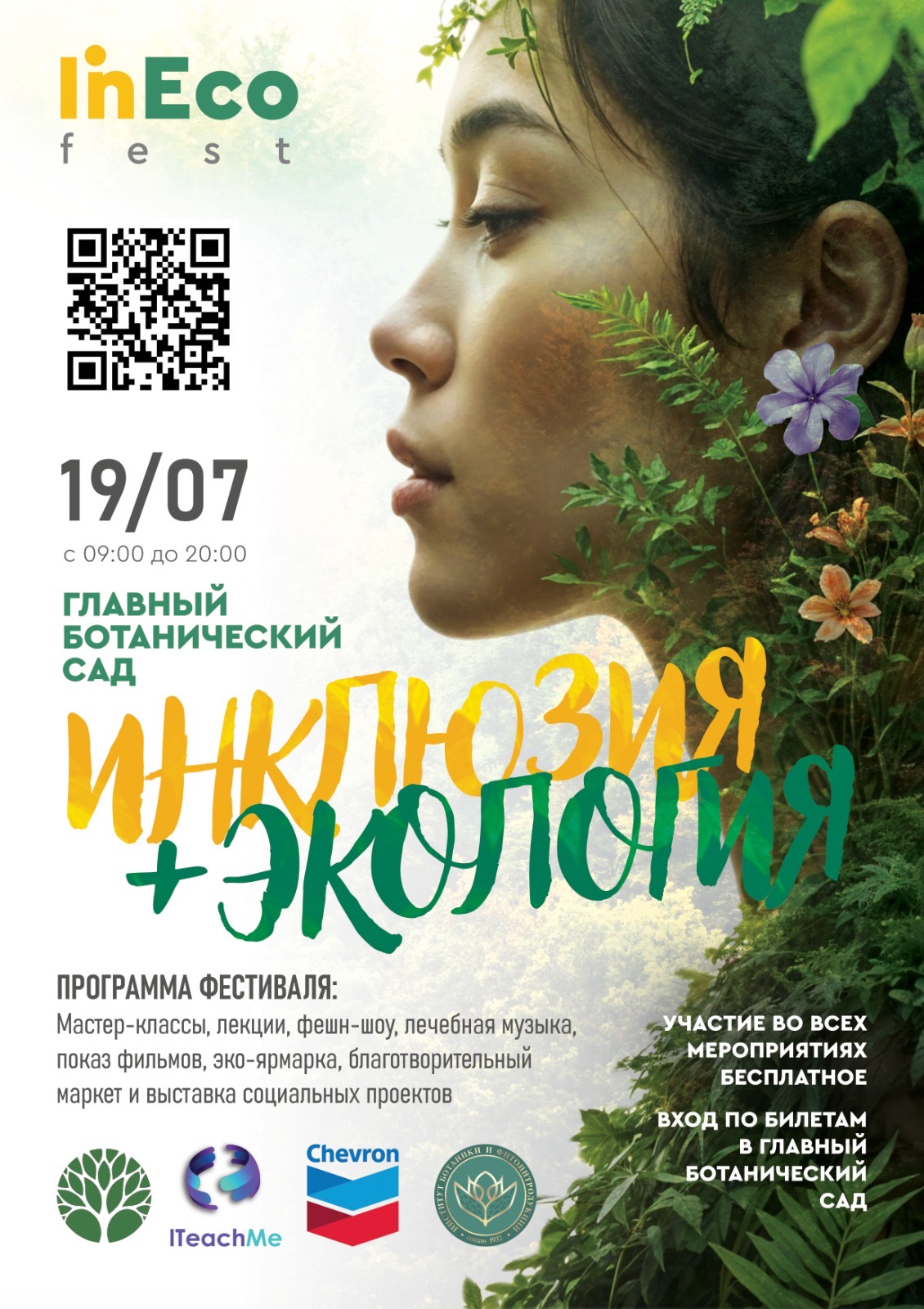 19 июля 2024 года с 09:00 до 20:00 в Главном Ботаническом саду г. Алматы пройдет масштабныйсемейный фестиваль Экологии и Инклюзии – InEco Fest 2024. Фестиваль организован фондом «ITeachMe» cовместно с Институтом Ботаники и Фитоинтродукции (Главным Ботаническом Садом г.Алматы) в партнерстве с компанией «Шеврон».