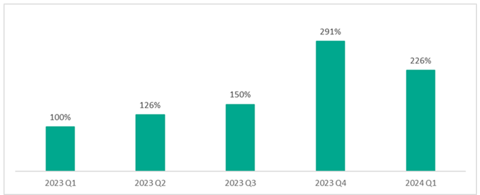 2023 жылдың сәйкес кезеңімен салыстырғанда 2024 жылдың бірінші тоқсанында Linux осалдықтарын пайдалана отырып, кибершабуыл әрекеттерінің саны шамамен 130% — ға өсті*. Бұл «Касперский Зертханасының» деректері. 2023 жылдың қаңтары мен 2024 жылдың наурызы аралығында кибершабуылдың шыңы 2023 жылдың төртінші тоқсанында болды.