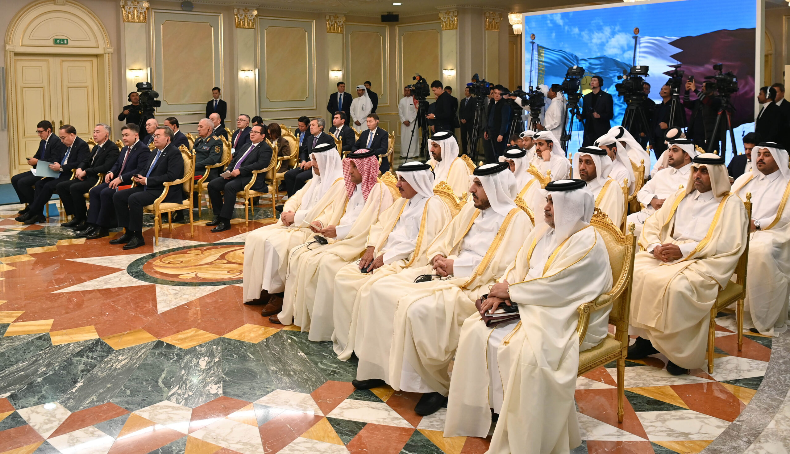 По окончании переговоров в узком и расширенном форматах Глава нашего государства Касым-Жомарт Токаев и Эмир Государства Катар шейх Тамим бен Хамад Аль Тани провели брифинг для представителей средств массовой информации. Об этом сообщает Матрица.kz со ссылкой на пресс-службу Акорды.