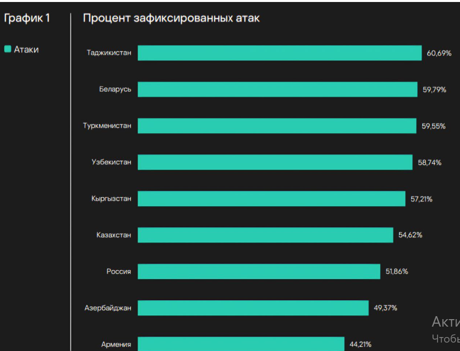 «Лаборатория Касперского» представила отчёт «Ландшафт угроз для России и СНГ» за первый квартал 2024 года и 2023 год. В первом квартале 2024 года доля пользователей в Казахстане, столкнувшихся с кибератаками, составила более 50%*. По этому показателю страна заняла шестое место среди других стран СНГ. На первом месте — Таджикистан.
