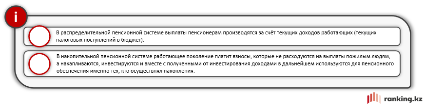 С учётом этой тенденции накопительная пенсионная система в РК — оптимальный вариант, поскольку она способна снизить нагрузку на госбюджет и повысить размер совокупной пенсии в будущем. Напомним: постепенный переход от распределительной к накопительной системе пенсионного обеспечения Казахстан начал в 1998 году. В дальнейшем, в условиях увеличения продолжительности жизни населения, роль накопительного компонента будет только расти.