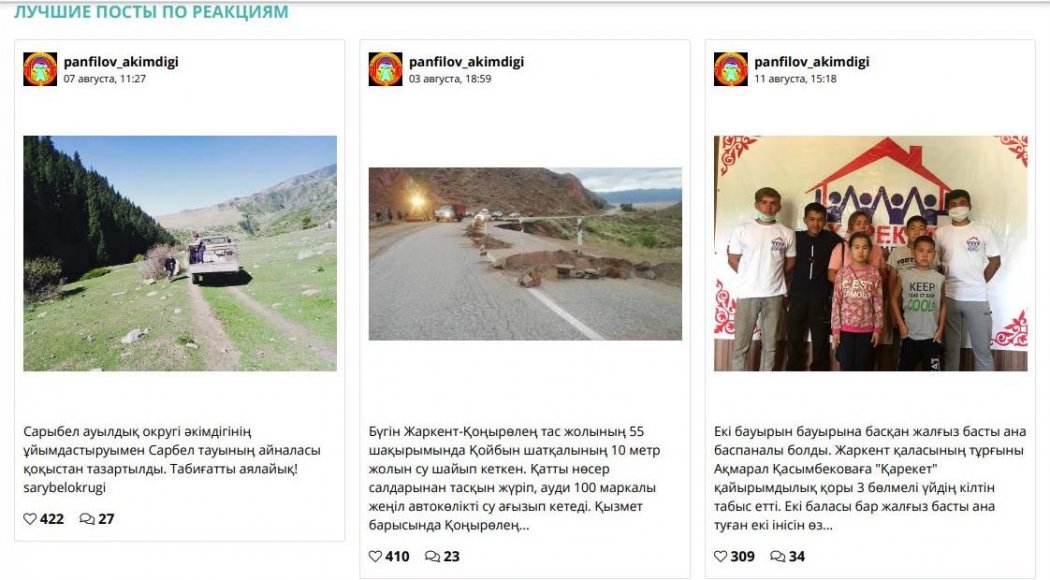 Отличные показатели у Енбекшиказхского и Панфиловского Инстаграм – 153 и 144 реакции на пост. Если в Енбекшиказахском районе аудитория «топила» за общественный транспорт, то в Панфиловском больше за экологию.