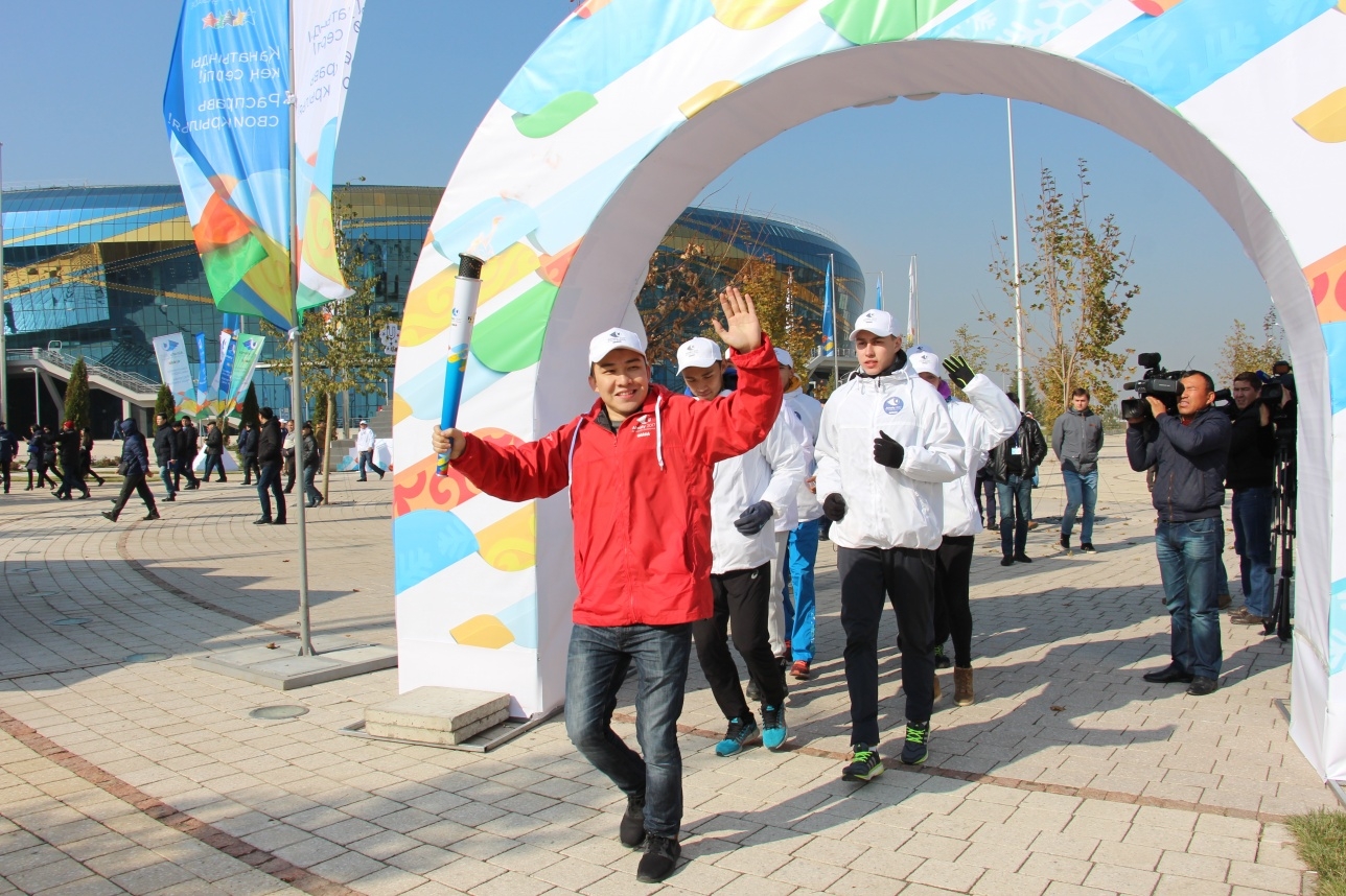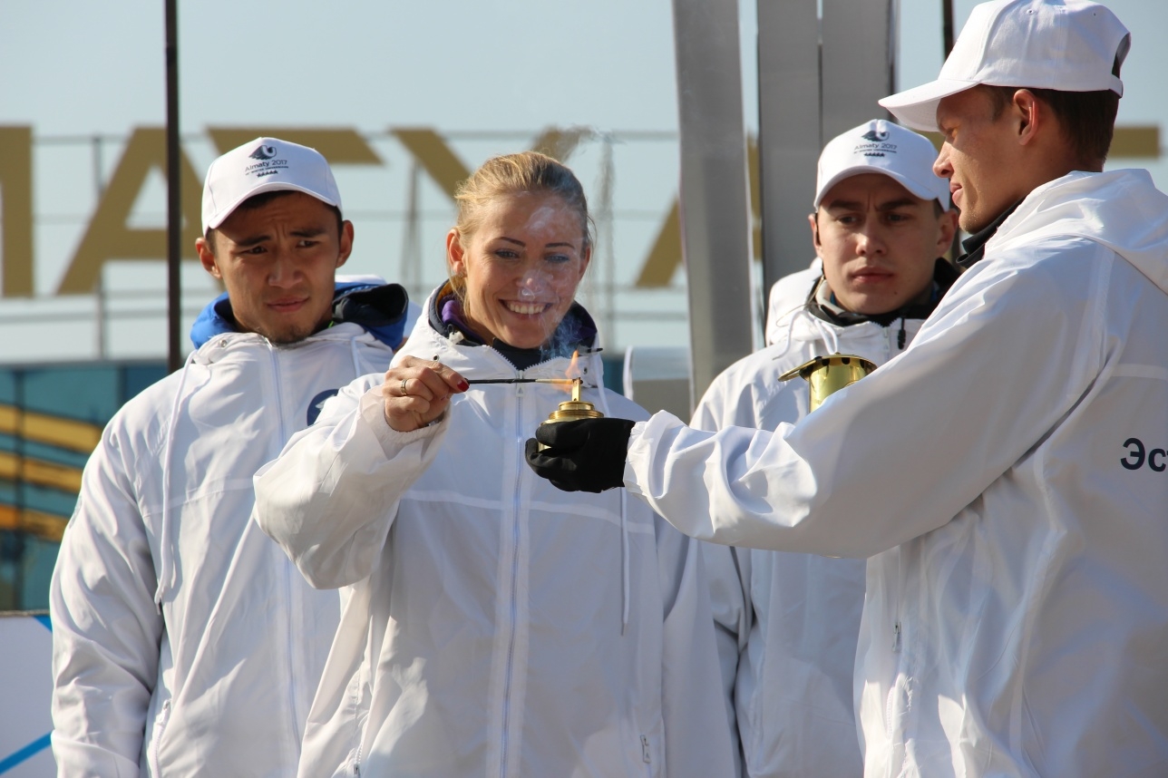 На тестовой эстафете собрались представители всех областных центров, которым так же на примере технических акима и ректора предстоит зажечь у себя огонь Универсиады.