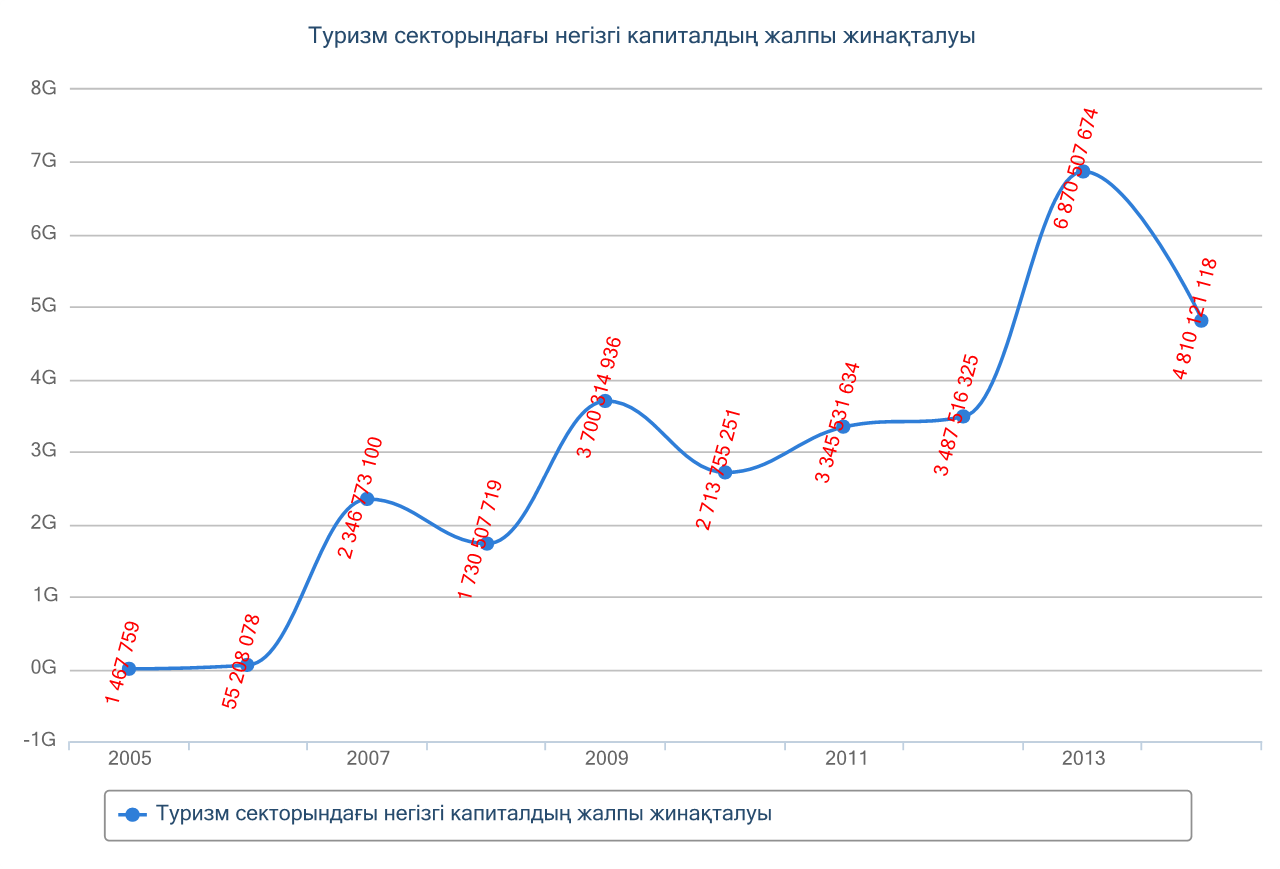 Тіпті Алакөлдің өзіне 2015 жылы шамамен 200 мың адам барса, 2016 жылы 300 мыңға жуық турист барған. 2017 жылдың қорытындысын енді көреміз. Ал олардан түскен қаражат қандай? Статистика комитетінің ресми парақшасында тек 2014 жылға дейінгі мәлімет бар. Сонымен комитет ұсынған мәліметке сүйенсек, 2014 жылы Қазақстанның туризм секторындағы негізгі капиталдың жалпы жинақталуы 4 млрд 810 млн теңгеден асқан. Кестеден көріп тұрғанымыздай көрсеткіш 2013 жылға қарағанда азайған.