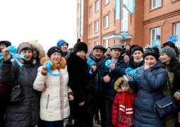 Ключи новоселам вручил аким области Крымбек Кушербаев, он поздравил жильцов с новосельем и наступающим праздником Наурыз.