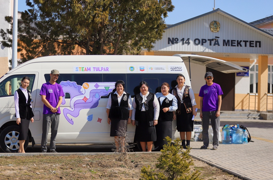 Еже одним «двигателем изменений» стал проект STEAM Tulpar – передвижная лаборатория, которая на крыльях знаний прилетала в школы Алматинской области. Символичный фургон, названный в честь мифического тулпара, превращал обычные школьные дворы в площадки для научных открытий. Здесь дети заглядывали в микроскопы, собирали роботов, запускали ракеты и проводили эксперименты. Tulpar становился окном в науку – живую, доступную и вдохновляющую. Этот проект стал не просто лабораторией на колесах, а настоящим социальным движением, вселяющим в детей уверенность, что наука – это про них.