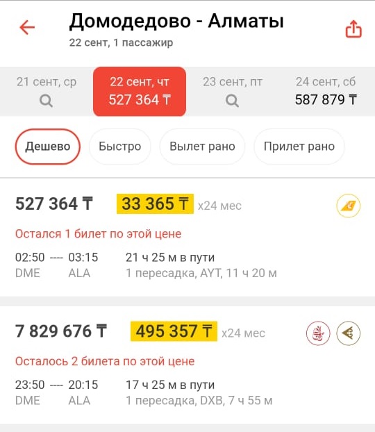 Ресейде шығатын The Village басылымының мәліметіне сүйенсек, бүгін 21 қыркүйек күні Мәскеуден Алматы мен Дубайға ұшатын тікелей рейстердің билеті таусылған. Бұл рейстің құны тіпті 7 829 676 теңгеге бағаланған. Ал Қазақстанға басқа қалалар арқылы ұшатын билеттің құны күрт қымбаттап, 500 мың теңгеге таяған.