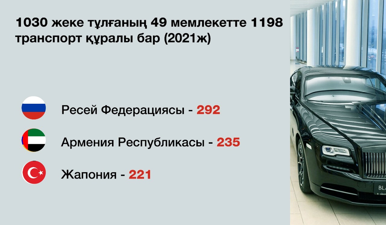 «Көлік иелердің нақты санын айта алмаймын. Біреудің көлігі миллион доллар тұрады. Елімізде мұндай көлік иелері санаулы ғана шығар. Яхталар, ұшақтар сияқты нәрселерге де қатысты, менің ойымша, мұндай адамдар көп емес», — деді министр.