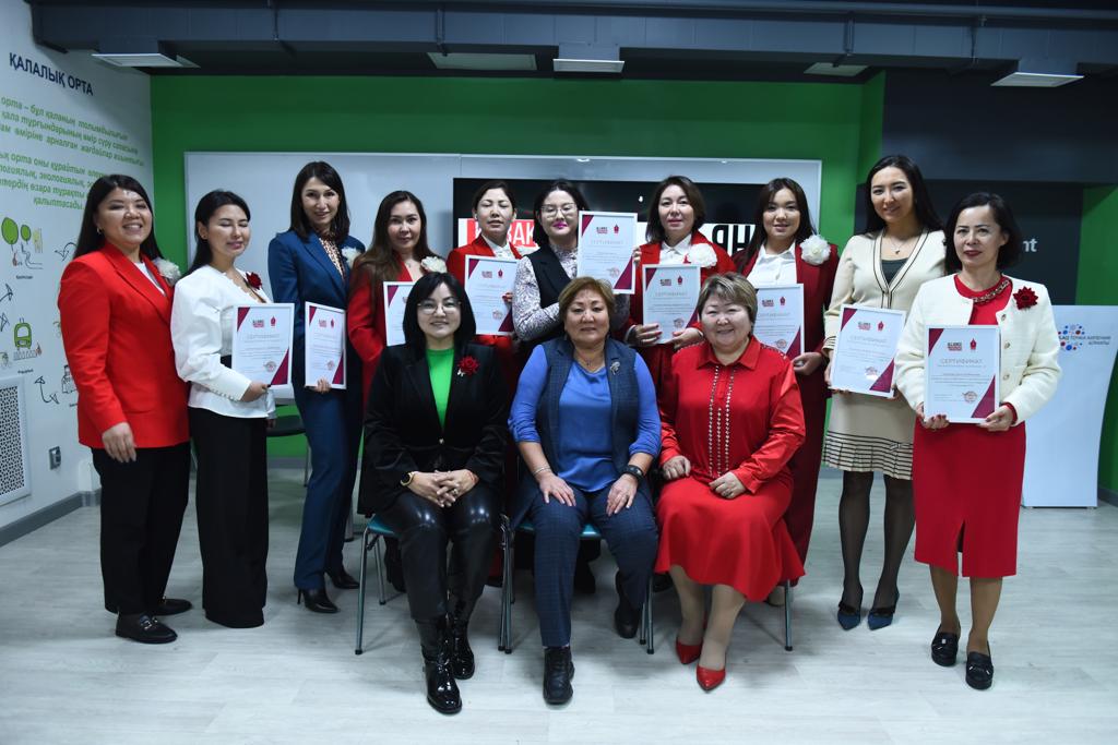 В Алматы завершился первый этап обучения в школе женского политического лидерства. Сертификаты участницам вручила Председатель клуба женщин-политиков, экс-депутат Мажилиса Парламента РК, государственный и общественный деятель Зауре Аманжолова. Выпускницы, успешно прошедшие полный курс обучения, пополнят ряды женщин в общественных, государственных структурах и органах исполнительной власти.