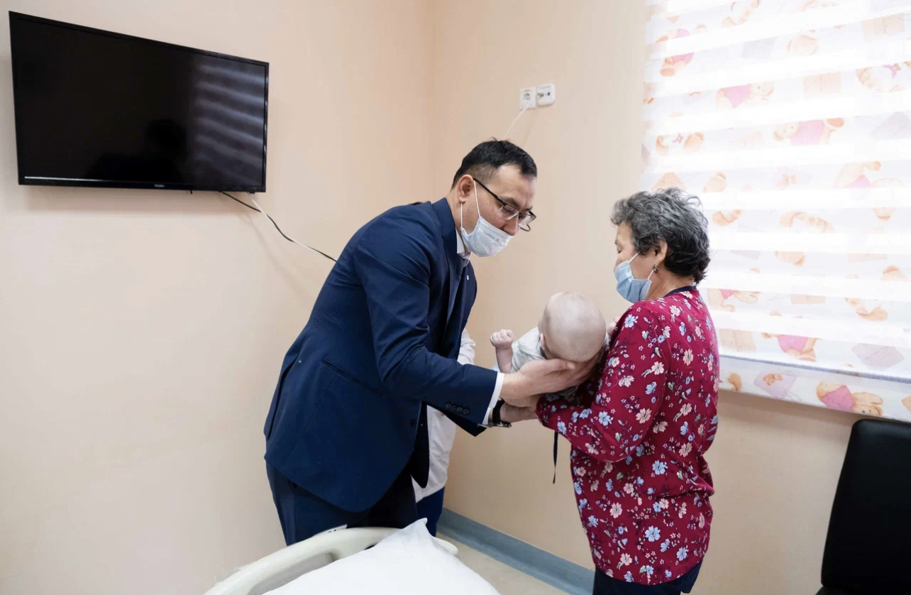 Гибрат Ауганов, управляющий директор по связям с общественностью, социально-трудовым отношениям и охране труда АО «Самрук-Қазына», посетил маленьких пациентов, пожелал скорейшего выздоровления в Новом году и поздравил их с праздником. Он также пообщался с родителями и медицинскими работниками.