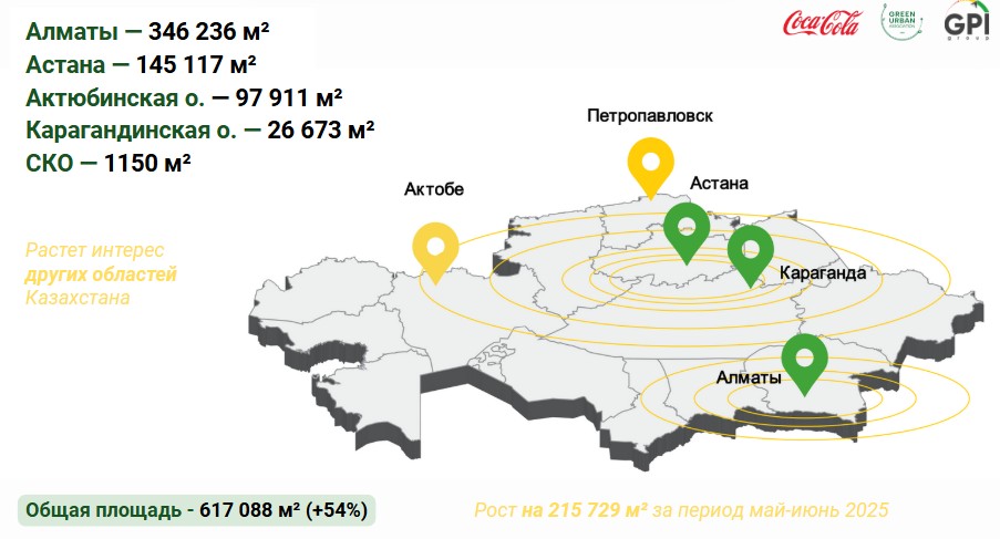 С мая по июнь 2025 года общая площадь объектов, присоединившихся к программе, увеличилась на 215 729 м² и составила 617 088 м2. Для сравнения, на момент запуска в Астане такой статус получили объекты площадью 54 820 м². Этот рост подтверждает, что устойчивое развитие перестаёт быть абстрактной идеей и становится частью деловой практики.