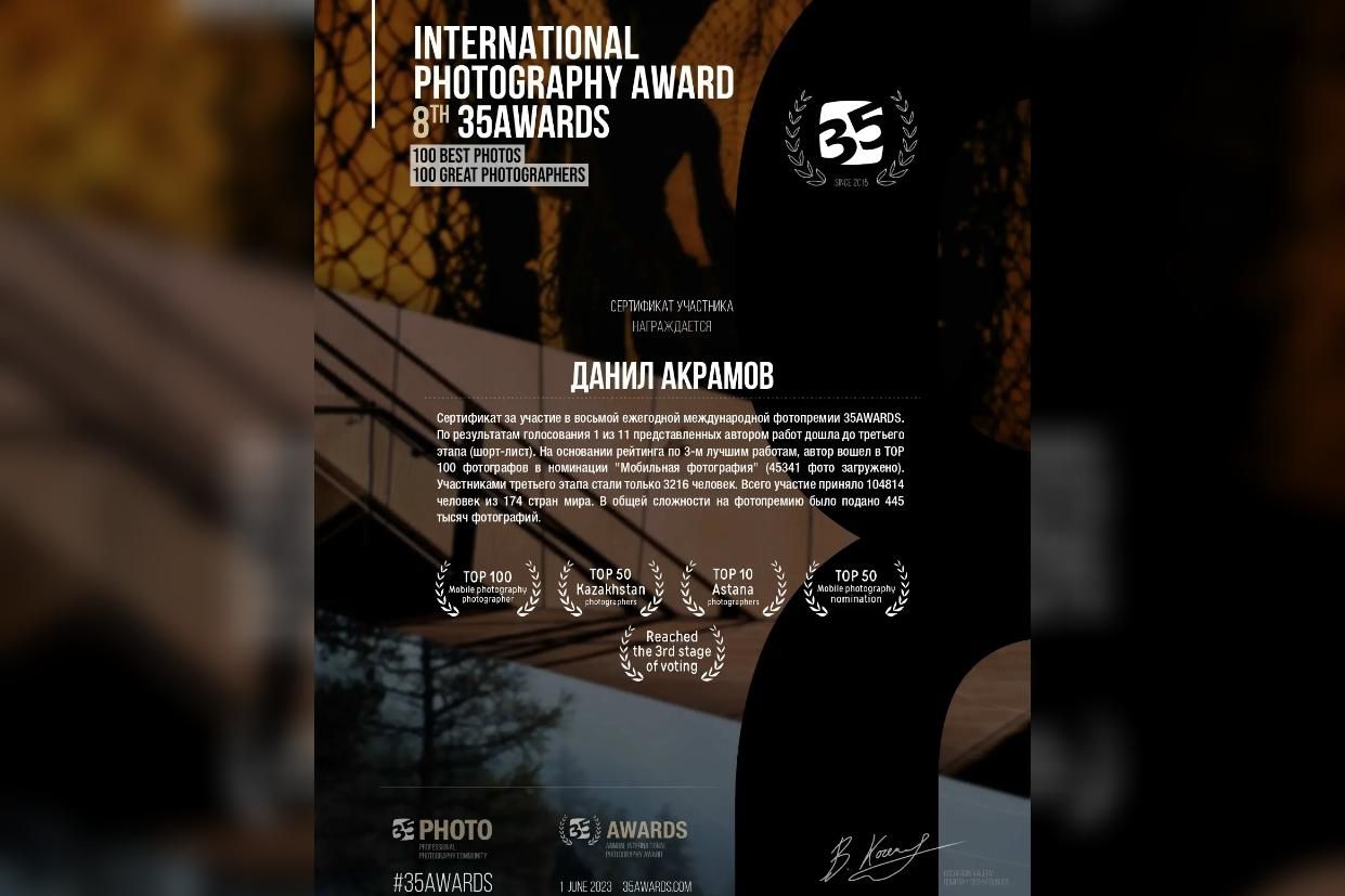 Сертификат за участие в 8 ежегодной международной фотопремии @35awards Данил получил лишь сегодня и поспешил поделиться с нами свои достижением.