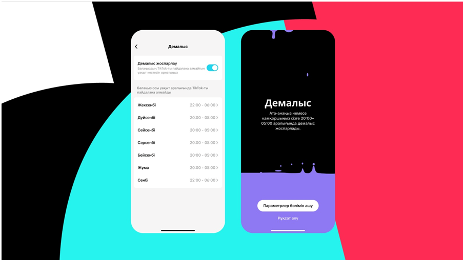 TikTok-тағы ата-аналардың бақылау жүйесінің бір бөлігі болып табылатын «Отбасылық баптаулардың» іске қосылғанына бес жыл болды. Осы жылдар ішінде ата-аналардың кері байланысы мен сарапшылардың ұсыныстарын ескере отырып, TikTok жаңа функцияларды бірнеше рет еңгізіп отырды. Бұл жолы TikTok қолданбасының әзірлеушілері «Демалыс» деген жаңа функцияны қосты. Ол қосымшаны белгілі бір уақытқа бұғаттауға мүмкіндік береді.