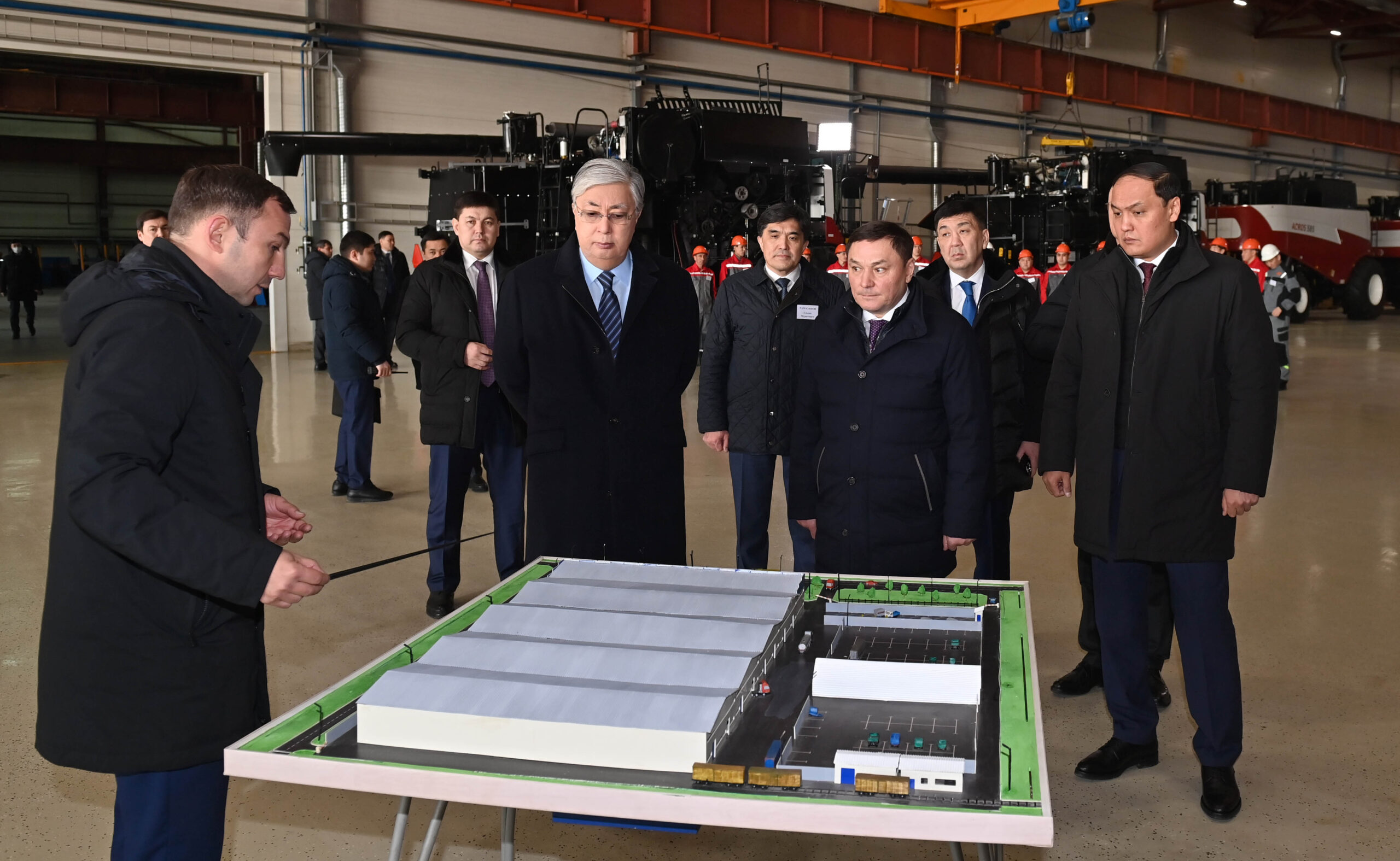 В ТОО «Казахстанская агроинновационная корпорация» президенту представили технологический процесс и образцы продукции предприятия, изготавливающего до 3 000 единиц сельскохозяйственной техники в год.