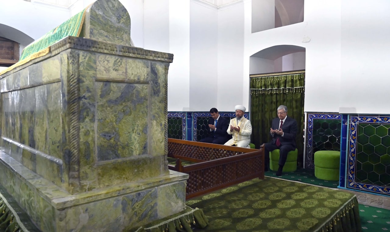 Глава государства посетил мавзолей Ходжи Ахмета Ясави в городе Туркестане. Об этом сообщает Матрица.kz со ссылкой на Telegram-канал «Борт №1».