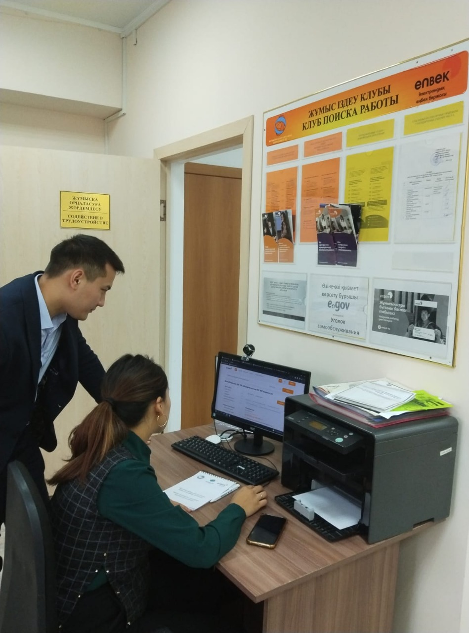 «Помогаем зарегистрироваться на электронной бирже труда enbek.kz. Консультируем тех, кто затрудняется разместить резюме. Рассказываем об активных сайтах по поиску работу, об актуальных вакансиях на рынке труда, как получить государственную услугу в сфере занятости, об активных мерах содействия занятости. Также ведем работу и с работодателями по регистрации на enbek.kz и размещении вакансий», — подчеркнула Ж.Айтмаганбетова.