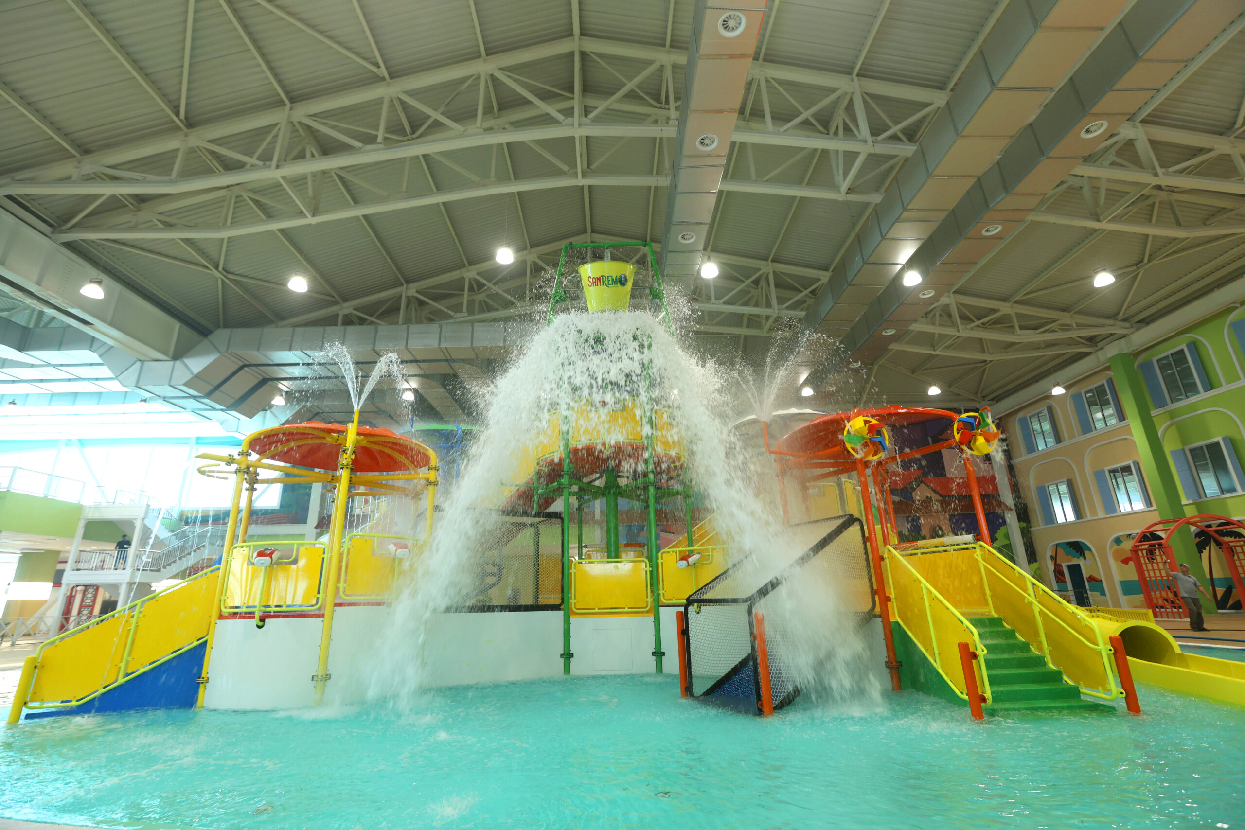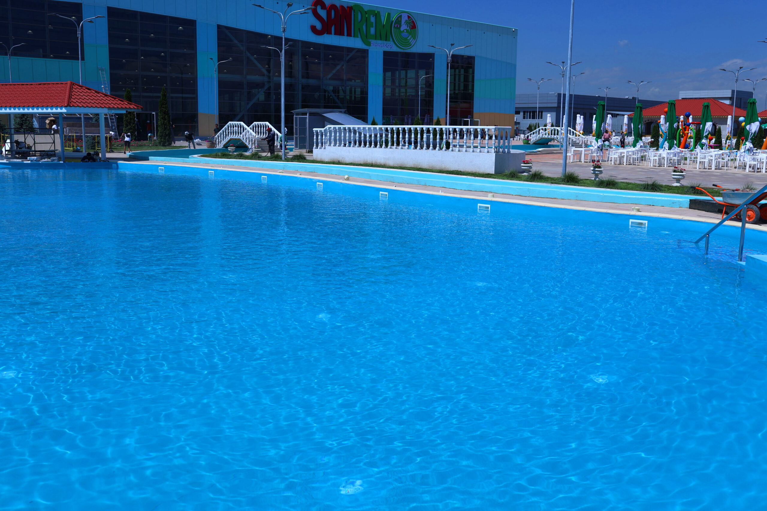 Круглогодичный комплекс SanRemo Resort&SPA – суперсовременный аквапарк, не имеющий аналогов в Центральной Азии – выполнен в стиле итальянского ретро, расположен на площади более 30 000 кв.м. и располагает уникальным волновым морем с 16 видами волн, интерактивной зоной для отдыха детей, обширной спрей-зоной, 4 барами на воде, ресторанами, а также самым большим в регионе SPA-центром площадью 2 500 кв.м.