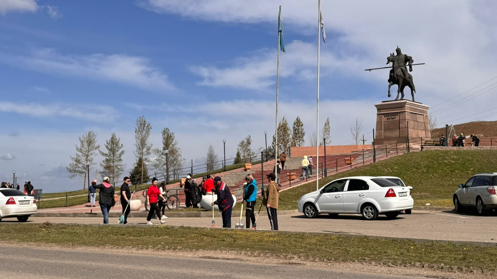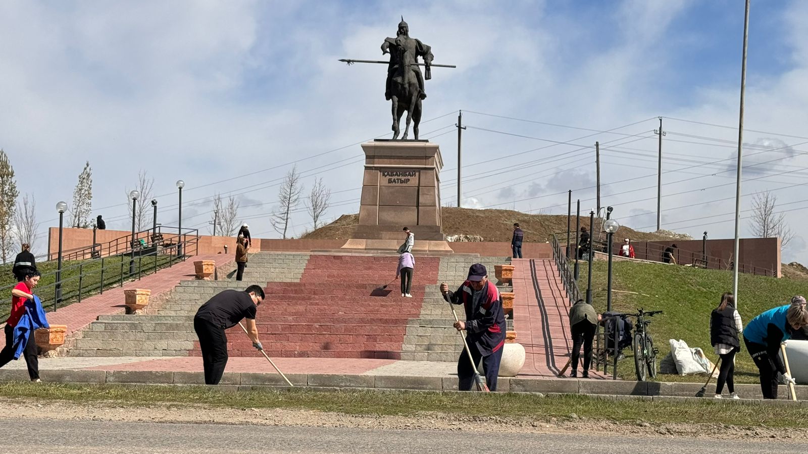 В Усть-Каменогорске массовый субботник стартовал у памятника Кабанбай Батыру, который расположен в черте города. Автором шестиметрового монумента, который открыли в областном центре в 2014 году, является Нурлан Далбай. Он изобразил легендарного казахского полководца сидящим с копьем на боевом коне, точно передав образ Кабанбай батыра, как символа сплочения и единства казахского народа.