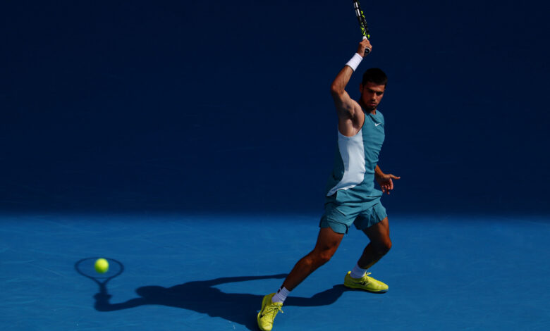 Жеңімпаз фотосуретте испандық теннисші Карлос Алькарас Мельбурнде (Австралия) өткен Australian Open 2025 турнирінің төртінші айналымында британдық Джек Дрейперге қарсы ойнаған сәті мінсіз дәлдікпен бейнеленген.