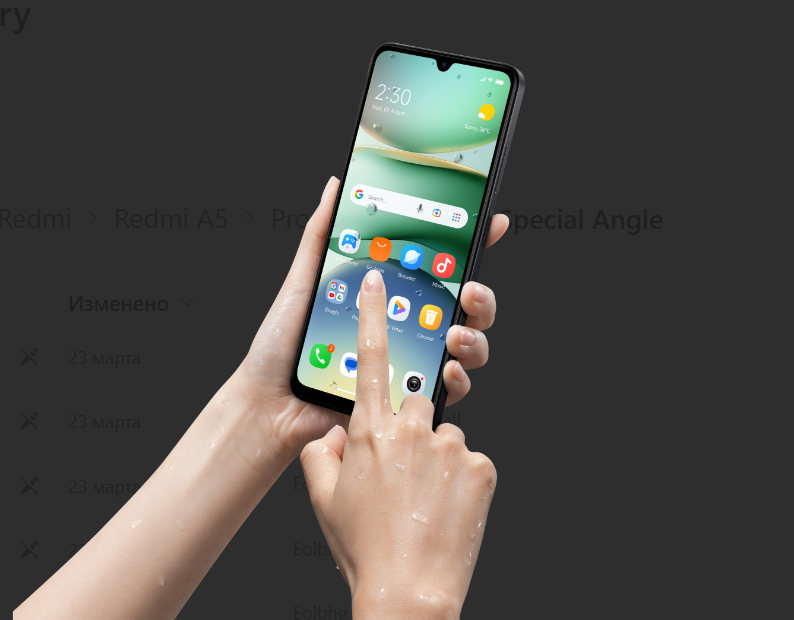 Несмотря на тонкий корпус, Redmi A5 расширяет возможности благодаря большому 6,88-дюймовому дисплею с частотой обновления до 120 Гц,³ обеспечивая по-настоящему захватывающие ощущения при просмотре видео, просмотре веб-страниц или чтении. Даже если руки влажные, технология wet touch помогает сохранить отзывчивость, что еще больше повышает удобство использования. В то же время при длительной работе защита глаз, сертифицированная TÜV Rheinland, и регулировка яркости постоянного тока помогают минимизировать нагрузку на глаза, облегчая длительное время работы с экраном.